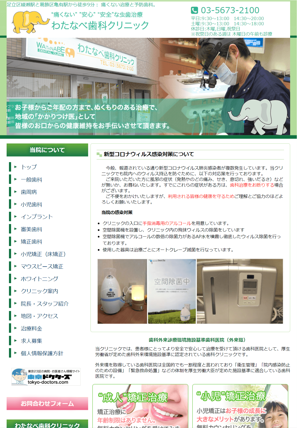 JR常磐線、地下鉄千代田線「綾瀬」駅から徒歩7分の歯科医院「わたなべ歯科クリニック」です。 患者様に常に満足していただくために、最新の検査・治療設備を整え、最新の治療技術などの研鑽に努め、常に治療選択の幅を増やし患者様の将来(QOL)を考えた治療を行います。